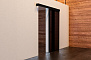 В первом варианте дверное полотно крепится к направляющей, установленной в верхней части дверного проема. В этом исполнении система открывания дверей Купе устанавливается на две створки, чтобы уменьшить глубину кармана внутри стены.